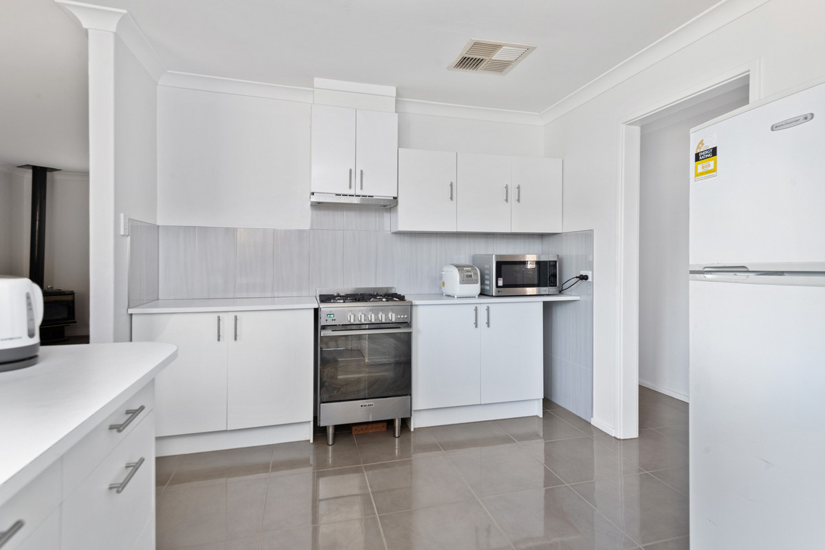 This home boasts a large open plan living and dining with wood heater, stunning brand new tiles and carpet throughout